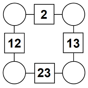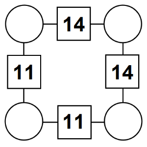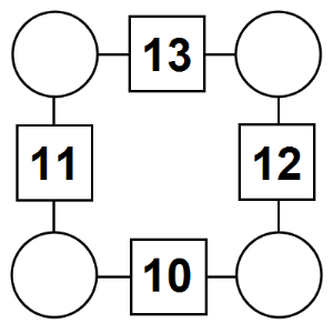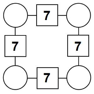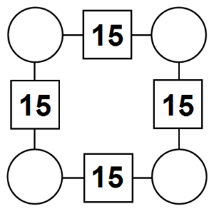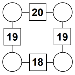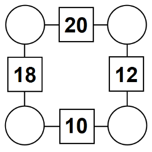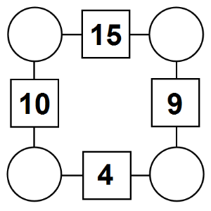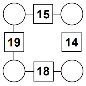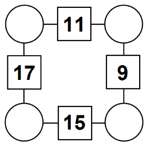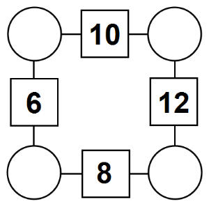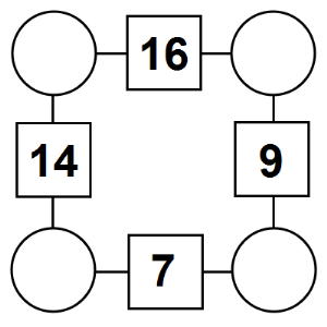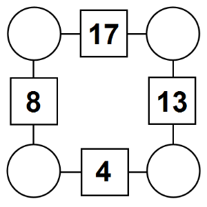 The aim of an arithmagon is to work out which numbers go in the empty circles. The numbers in the square boxes are made by adding together the numbers in the circles either side. For example, if the number in the square box was 10 you could try 6 and 4, but the numbers must also add up on the other edges, making this more difficult than it first appears.