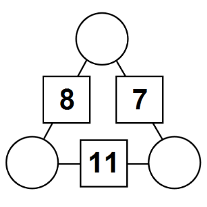 The aim of an arithmagon is to work out which numbers go in the empty circles. The numbers in the square boxes are made by adding together the numbers in the circles either side. For example, if the number in the square box was 10 you could try 6 and 4, but the numbers must also add up on the other edges, making this more difficult than it first appears.