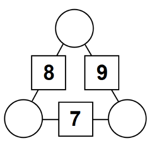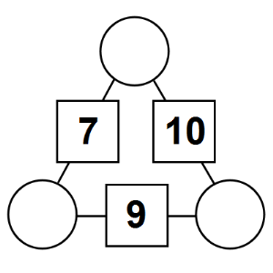 The aim of an arithmagon is to work out which numbers go in the empty circles. The numbers in the square boxes are made by adding together the numbers in the circles either side. For example, if the number in the square box was 10 you could try 6 and 4, but the numbers must also add up on the other edges, making this more difficult than it first appears.
