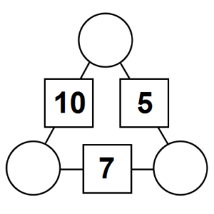 The aim of an arithmagon is to work out which numbers go in the empty circles. The numbers in the square boxes are made by adding together the numbers in the circles either side. For example, if the number in the square box was 10 you could try 6 and 4, but the numbers must also add up on the other edges, making this more difficult than it first appears.