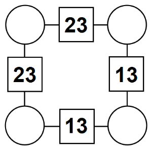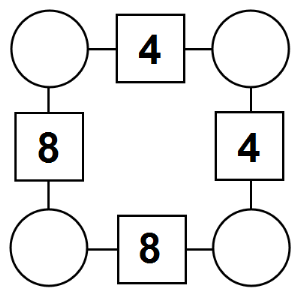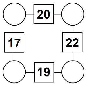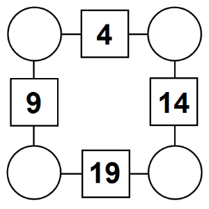 The aim of an arithmagon is to work out which numbers go in the empty circles. The numbers in the square boxes are made by adding together the numbers in the circles either side. For example, if the number in the square box was 10 you could try 6 and 4, but the numbers must also add up on the other edges, making this more difficult than it first appears.