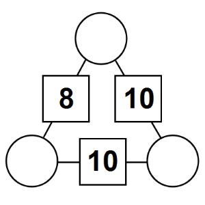The aim of an arithmagon is to work out which numbers go in the empty circles. The numbers in the square boxes are made by adding together the numbers in the circles either side. For example, if the number in the square box was 10 you could try 6 and 4, but the numbers must also add up on the other edges, making this more difficult than it first appears.