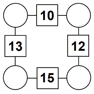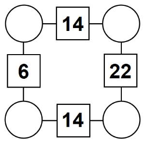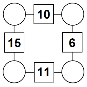 The aim of an arithmagon is to work out which numbers go in the empty circles. The numbers in the square boxes are made by adding together the numbers in the circles either side. For example, if the number in the square box was 10 you could try 6 and 4, but the numbers must also add up on the other edges, making this more difficult than it first appears.