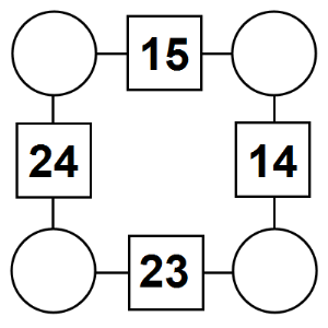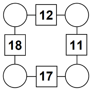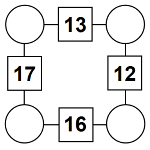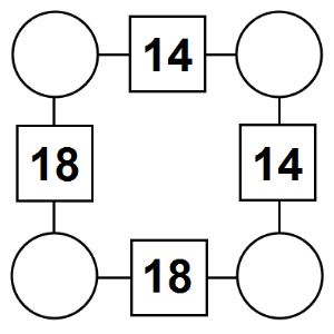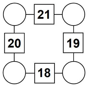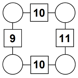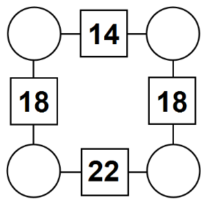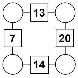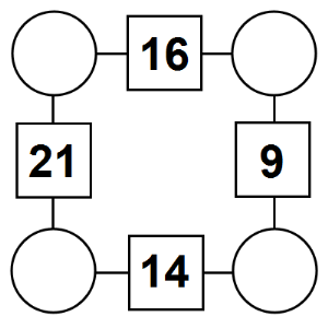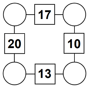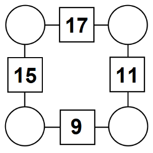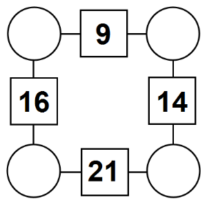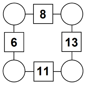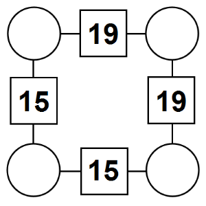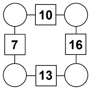 The aim of an arithmagon is to work out which numbers go in the empty circles. The numbers in the square boxes are made by adding together the numbers in the circles either side. For example, if the number in the square box was 10 you could try 6 and 4, but the numbers must also add up on the other edges, making this more difficult than it first appears.