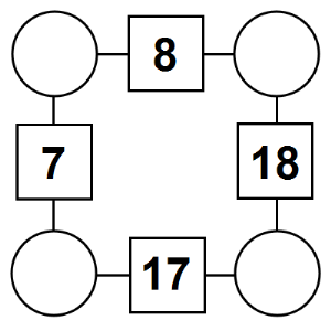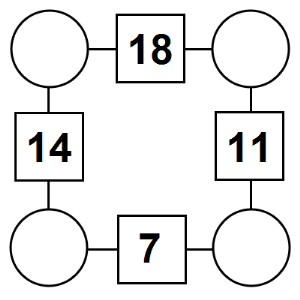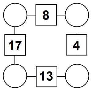 The aim of an arithmagon is to work out which numbers go in the empty circles. The numbers in the square boxes are made by adding together the numbers in the circles either side. For example, if the number in the square box was 10 you could try 6 and 4, but the numbers must also add up on the other edges, making this more difficult than it first appears.