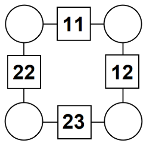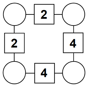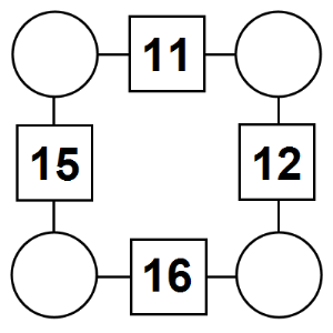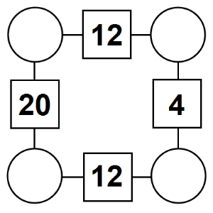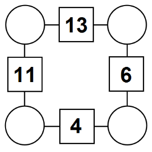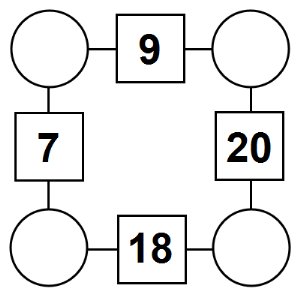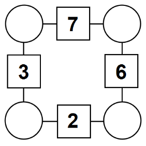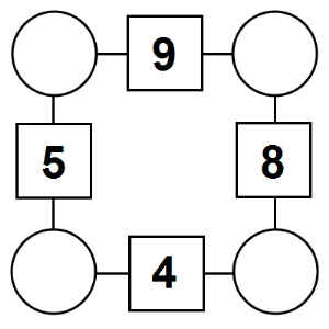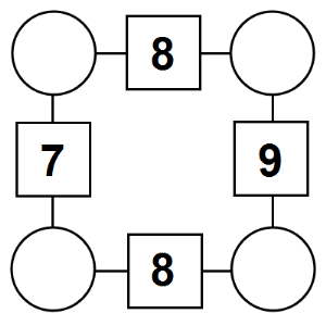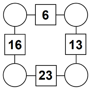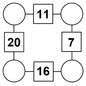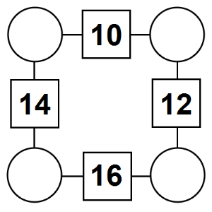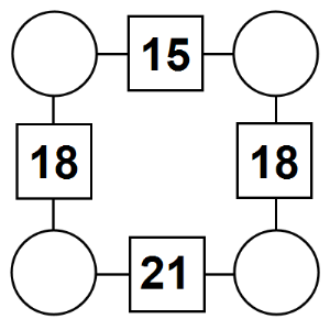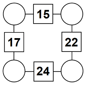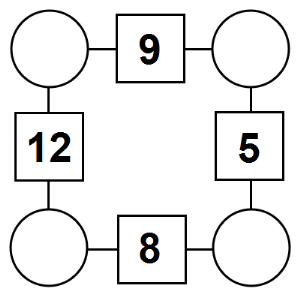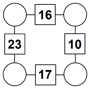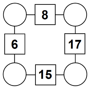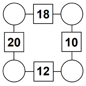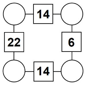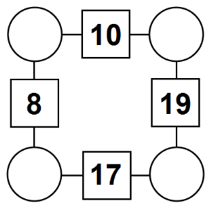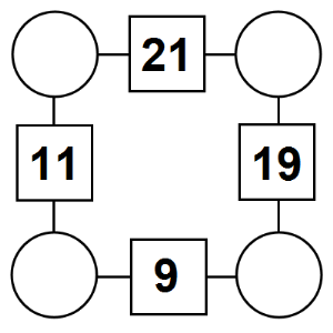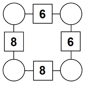 The aim of an arithmagon is to work out which numbers go in the empty circles. The numbers in the square boxes are made by adding together the numbers in the circles either side. For example, if the number in the square box was 10 you could try 6 and 4, but the numbers must also add up on the other edges, making this more difficult than it first appears.