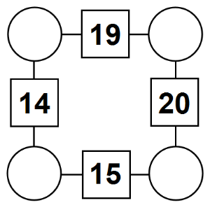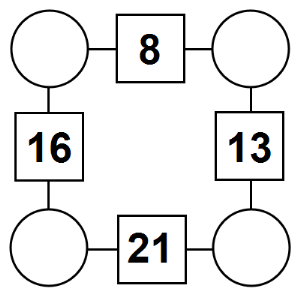The aim of an arithmagon is to work out which numbers go in the empty circles. The numbers in the square boxes are made by adding together the numbers in the circles either side. For example, if the number in the square box was 10 you could try 6 and 4, but the numbers must also add up on the other edges, making this more difficult than it first appears.