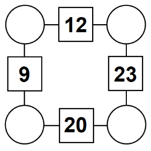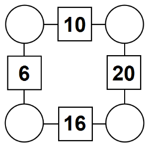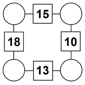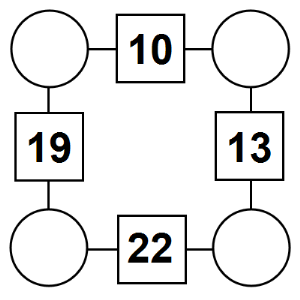 The aim of an arithmagon is to work out which numbers go in the empty circles. The numbers in the square boxes are made by adding together the numbers in the circles either side. For example, if the number in the square box was 10 you could try 6 and 4, but the numbers must also add up on the other edges, making this more difficult than it first appears.