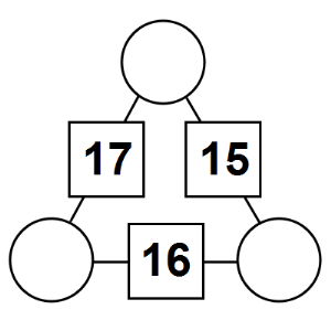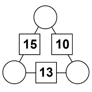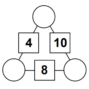 The aim of an arithmagon is to work out which numbers go in the empty circles. The numbers in the square boxes are made by adding together the numbers in the circles either side. For example, if the number in the square box was 10 you could try 6 and 4, but the numbers must also add up on the other edges, making this more difficult than it first appears.