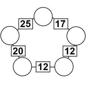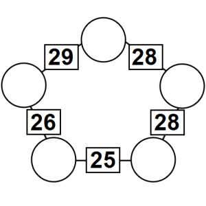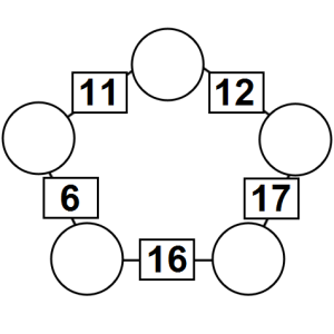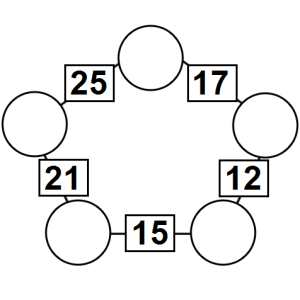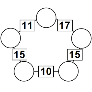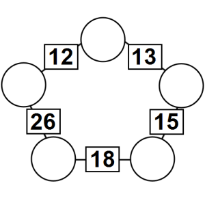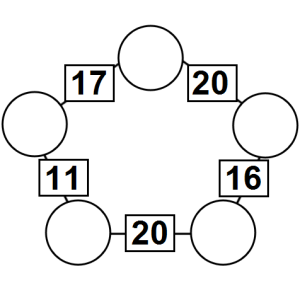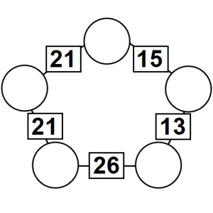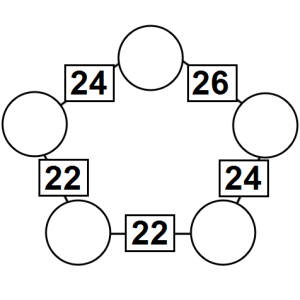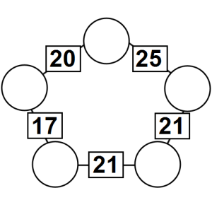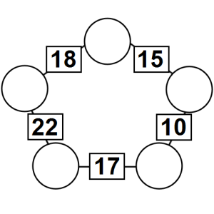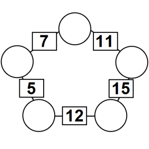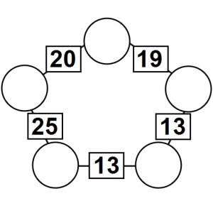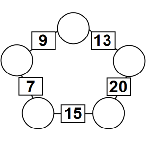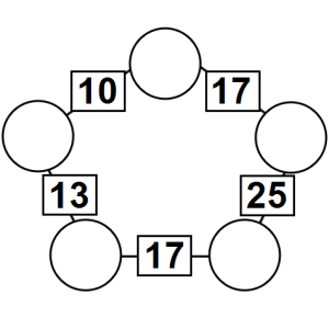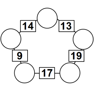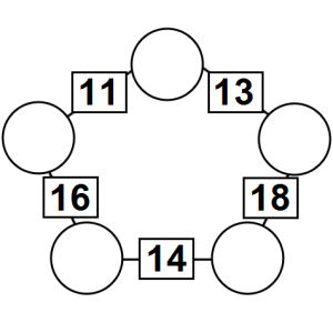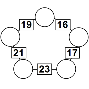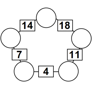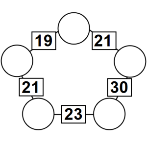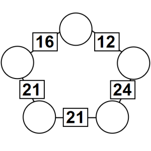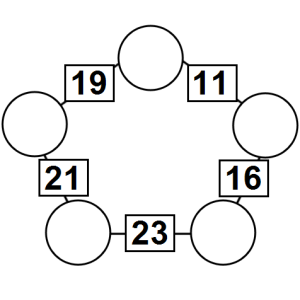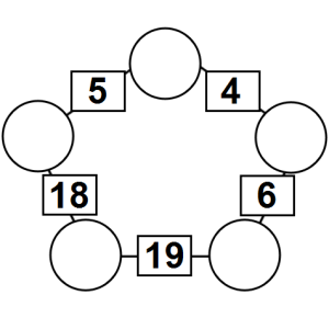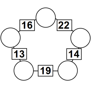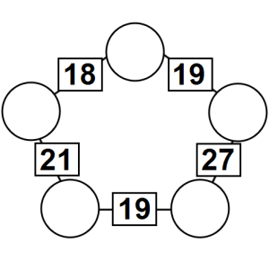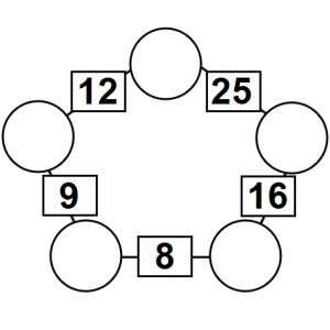 The aim of an arithmagon is to work out which numbers go in the empty circles. The numbers in the square boxes are made by adding together the numbers in the circles either side. For example, if the number in the square box was 10 you could try 6 and 4, but the numbers must also add up on the other edges, making this more difficult than it first appears.