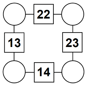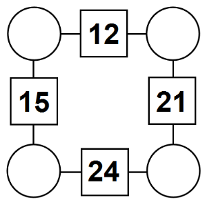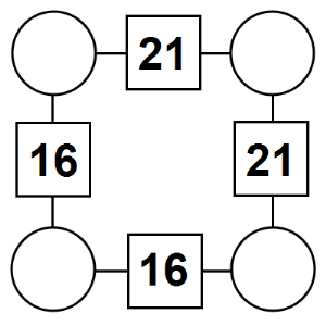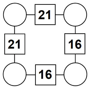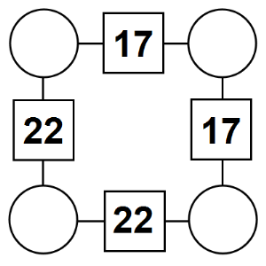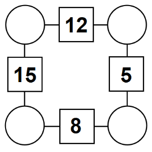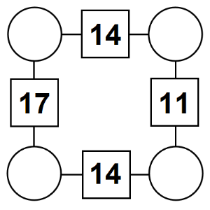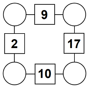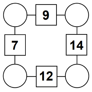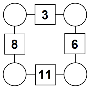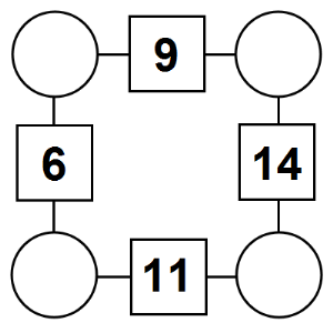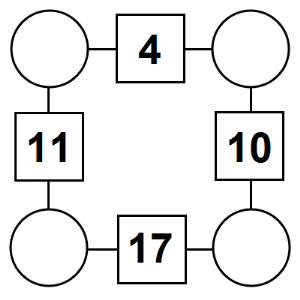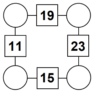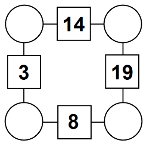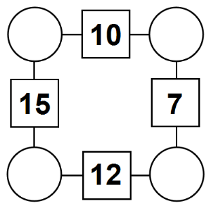 The aim of an arithmagon is to work out which numbers go in the empty circles. The numbers in the square boxes are made by adding together the numbers in the circles either side. For example, if the number in the square box was 10 you could try 6 and 4, but the numbers must also add up on the other edges, making this more difficult than it first appears.