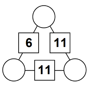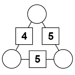The aim of an arithmagon is to work out which numbers go in the empty circles. The numbers in the square boxes are made by adding together the numbers in the circles either side. For example, if the number in the square box was 10 you could try 6 and 4, but the numbers must also add up on the other edges, making this more difficult than it first appears.
