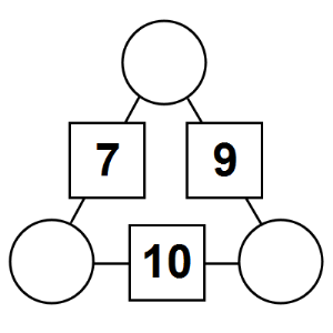 The aim of an arithmagon is to work out which numbers go in the empty circles. The numbers in the square boxes are made by adding together the numbers in the circles either side. For example, if the number in the square box was 10 you could try 6 and 4, but the numbers must also add up on the other edges, making this more difficult than it first appears.