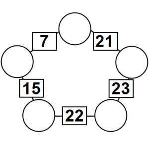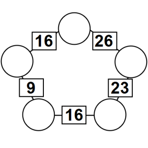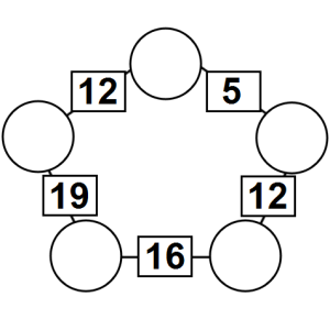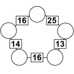 The aim of an arithmagon is to work out which numbers go in the empty circles. The numbers in the square boxes are made by adding together the numbers in the circles either side. For example, if the number in the square box was 10 you could try 6 and 4, but the numbers must also add up on the other edges, making this more difficult than it first appears.