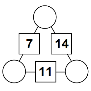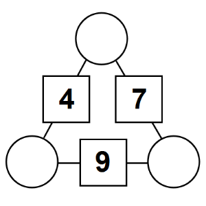 The aim of an arithmagon is to work out which numbers go in the empty circles. The numbers in the square boxes are made by adding together the numbers in the circles either side. For example, if the number in the square box was 10 you could try 6 and 4, but the numbers must also add up on the other edges, making this more difficult than it first appears.
