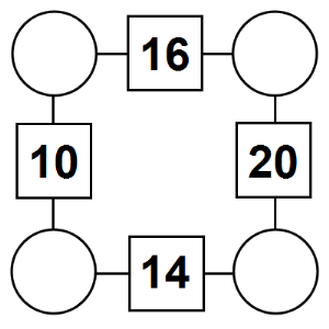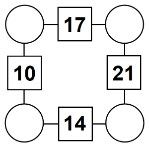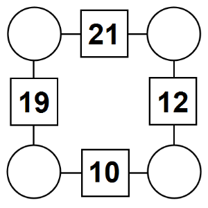 The aim of an arithmagon is to work out which numbers go in the empty circles. The numbers in the square boxes are made by adding together the numbers in the circles either side. For example, if the number in the square box was 10 you could try 6 and 4, but the numbers must also add up on the other edges, making this more difficult than it first appears.