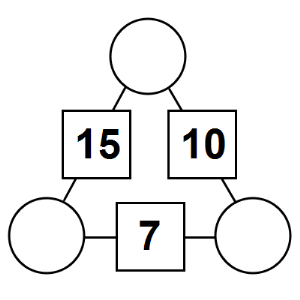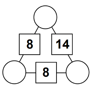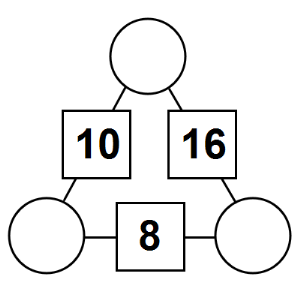 The aim of an arithmagon is to work out which numbers go in the empty circles. The numbers in the square boxes are made by adding together the numbers in the circles either side. For example, if the number in the square box was 10 you could try 6 and 4, but the numbers must also add up on the other edges, making this more difficult than it first appears.