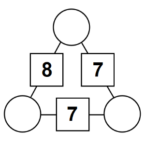 The aim of an arithmagon is to work out which numbers go in the empty circles. The numbers in the square boxes are made by adding together the numbers in the circles either side. For example, if the number in the square box was 10 you could try 6 and 4, but the numbers must also add up on the other edges, making this more difficult than it first appears.