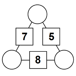 The aim of an arithmagon is to work out which numbers go in the empty circles. The numbers in the square boxes are made by adding together the numbers in the circles either side. For example, if the number in the square box was 10 you could try 6 and 4, but the numbers must also add up on the other edges, making this more difficult than it first appears.