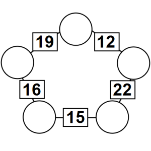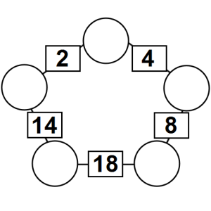 The aim of an arithmagon is to work out which numbers go in the empty circles. The numbers in the square boxes are made by adding together the numbers in the circles either side. For example, if the number in the square box was 10 you could try 6 and 4, but the numbers must also add up on the other edges, making this more difficult than it first appears.