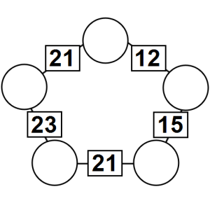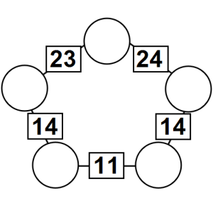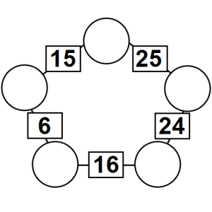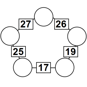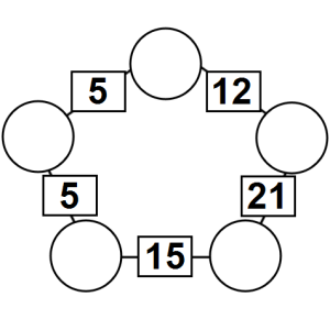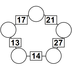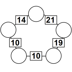 The aim of an arithmagon is to work out which numbers go in the empty circles. The numbers in the square boxes are made by adding together the numbers in the circles either side. For example, if the number in the square box was 10 you could try 6 and 4, but the numbers must also add up on the other edges, making this more difficult than it first appears.