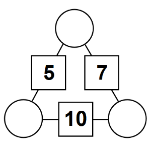 The aim of an arithmagon is to work out which numbers go in the empty circles. The numbers in the square boxes are made by adding together the numbers in the circles either side. For example, if the number in the square box was 10 you could try 6 and 4, but the numbers must also add up on the other edges, making this more difficult than it first appears.
