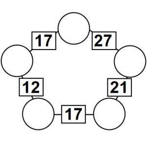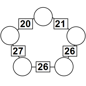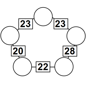 The aim of an arithmagon is to work out which numbers go in the empty circles. The numbers in the square boxes are made by adding together the numbers in the circles either side. For example, if the number in the square box was 10 you could try 6 and 4, but the numbers must also add up on the other edges, making this more difficult than it first appears.