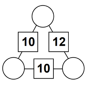 The aim of an arithmagon is to work out which numbers go in the empty circles. The numbers in the square boxes are made by adding together the numbers in the circles either side. For example, if the number in the square box was 10 you could try 6 and 4, but the numbers must also add up on the other edges, making this more difficult than it first appears.