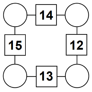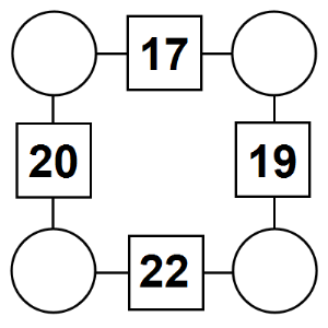 The aim of an arithmagon is to work out which numbers go in the empty circles. The numbers in the square boxes are made by adding together the numbers in the circles either side. For example, if the number in the square box was 10 you could try 6 and 4, but the numbers must also add up on the other edges, making this more difficult than it first appears.