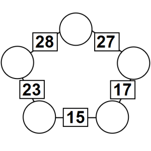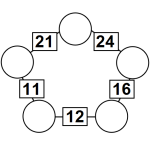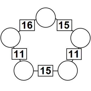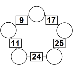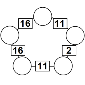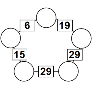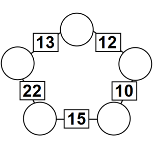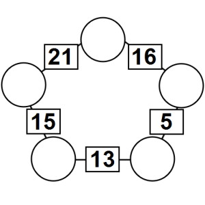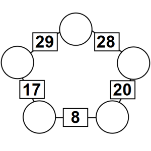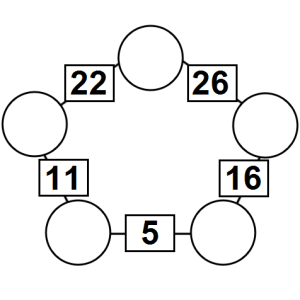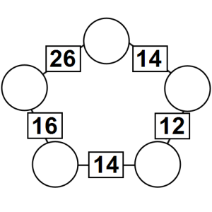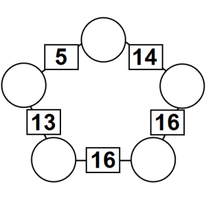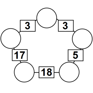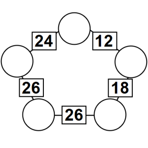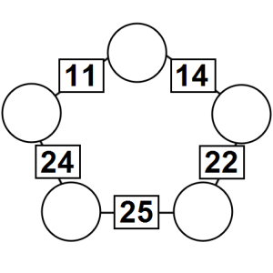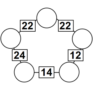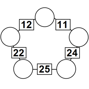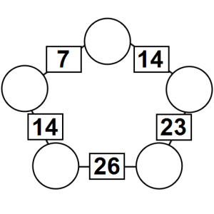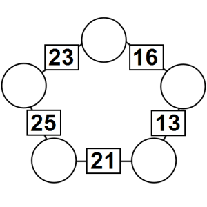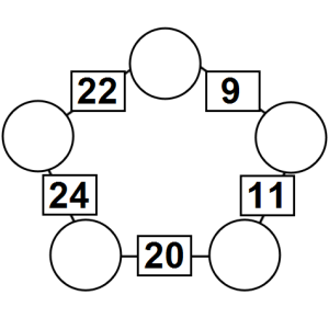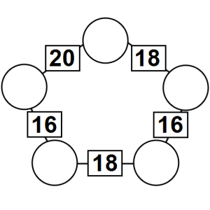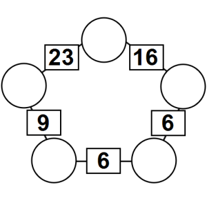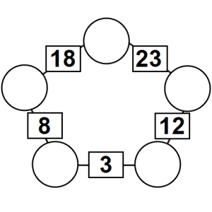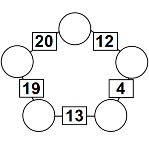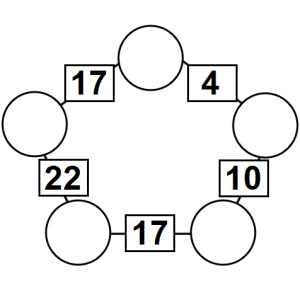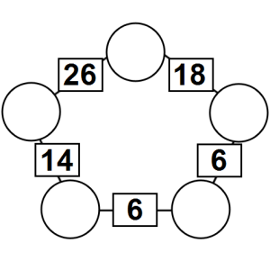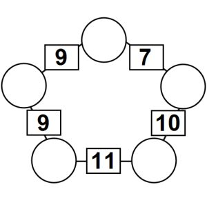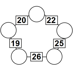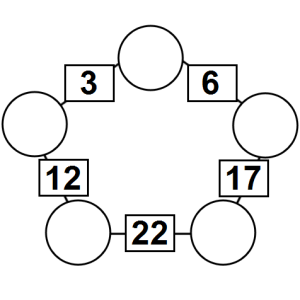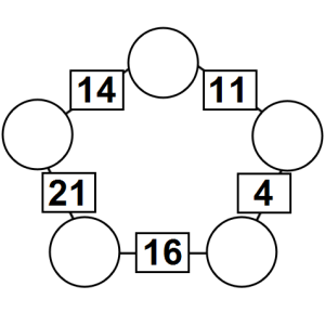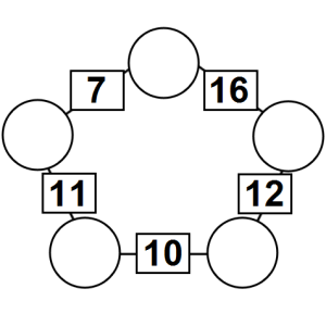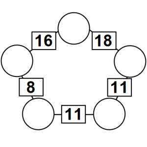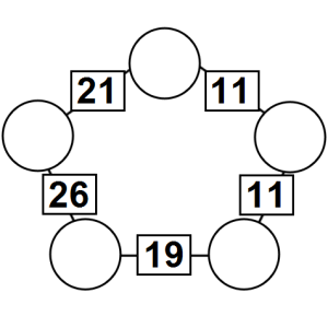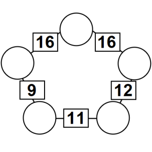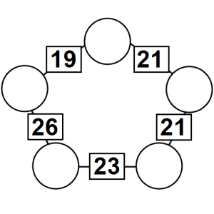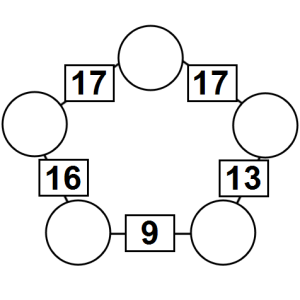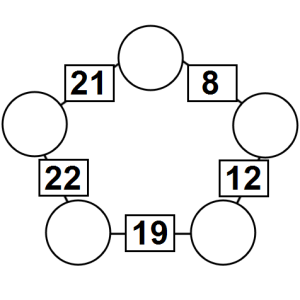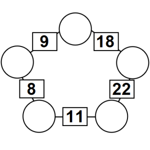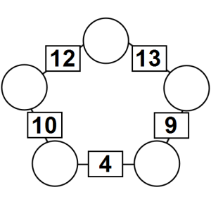 The aim of an arithmagon is to work out which numbers go in the empty circles. The numbers in the square boxes are made by adding together the numbers in the circles either side. For example, if the number in the square box was 10 you could try 6 and 4, but the numbers must also add up on the other edges, making this more difficult than it first appears.
