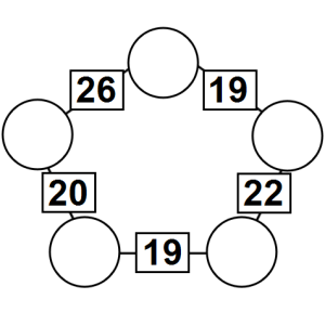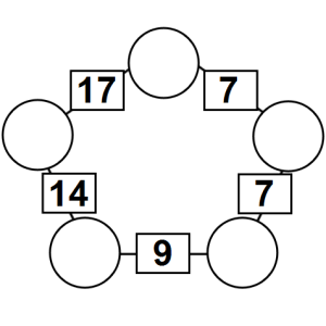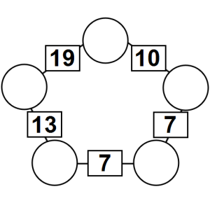 The aim of an arithmagon is to work out which numbers go in the empty circles. The numbers in the square boxes are made by adding together the numbers in the circles either side. For example, if the number in the square box was 10 you could try 6 and 4, but the numbers must also add up on the other edges, making this more difficult than it first appears.