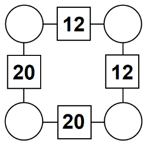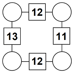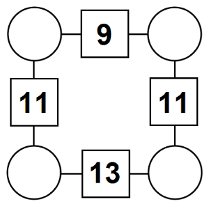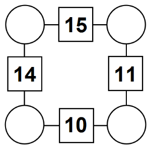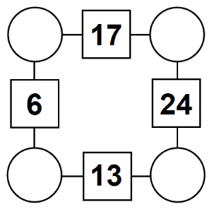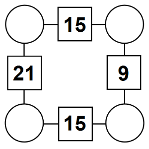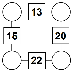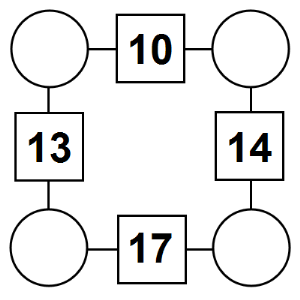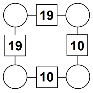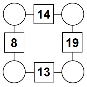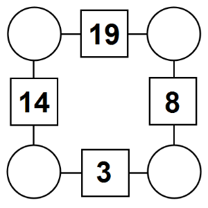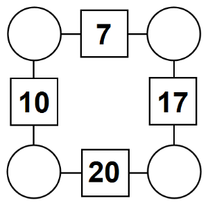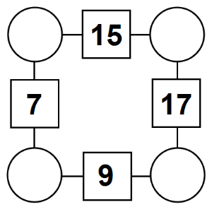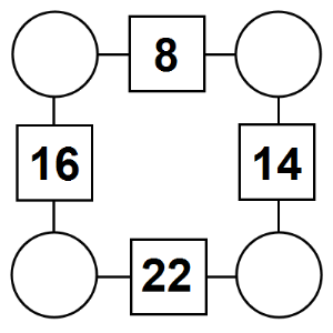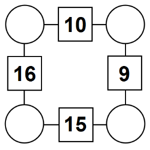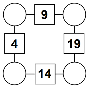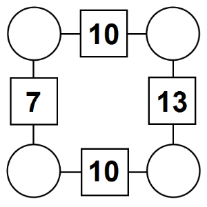 The aim of an arithmagon is to work out which numbers go in the empty circles. The numbers in the square boxes are made by adding together the numbers in the circles either side. For example, if the number in the square box was 10 you could try 6 and 4, but the numbers must also add up on the other edges, making this more difficult than it first appears.