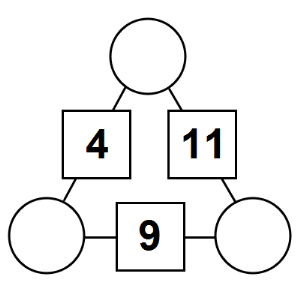 The aim of an arithmagon is to work out which numbers go in the empty circles. The numbers in the square boxes are made by adding together the numbers in the circles either side. For example, if the number in the square box was 10 you could try 6 and 4, but the numbers must also add up on the other edges, making this more difficult than it first appears.