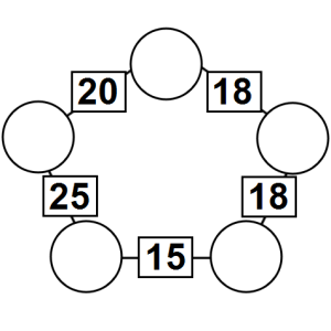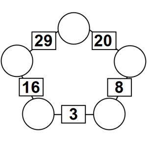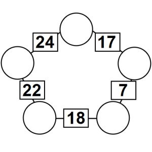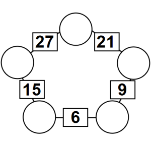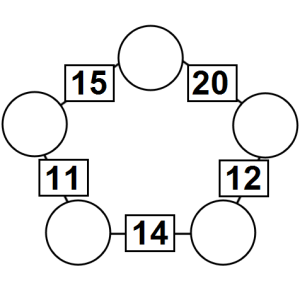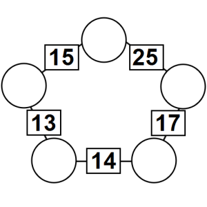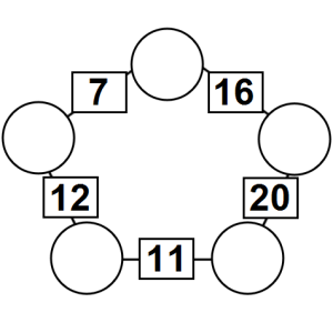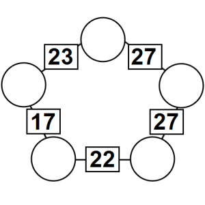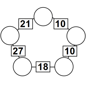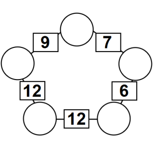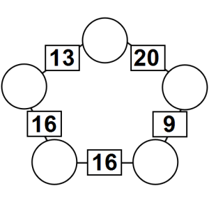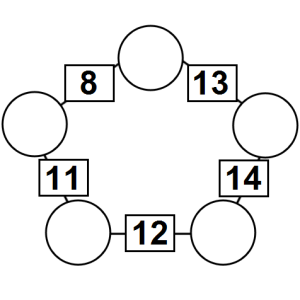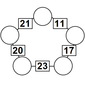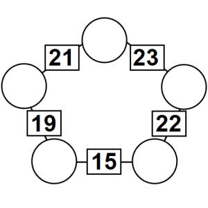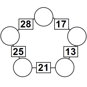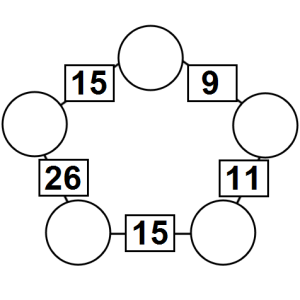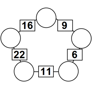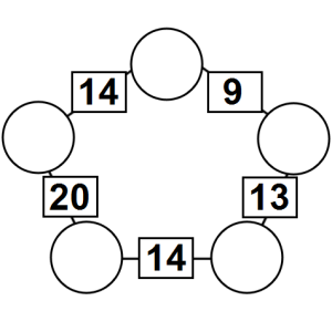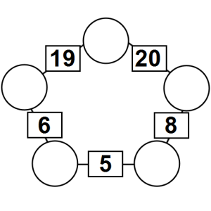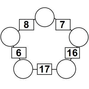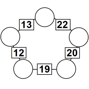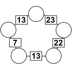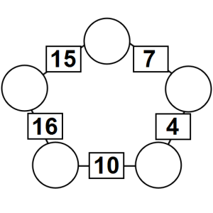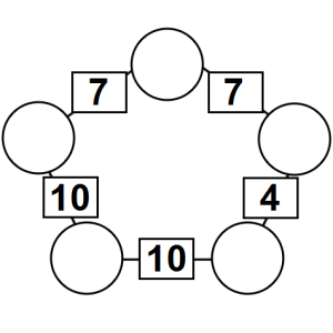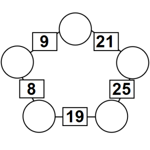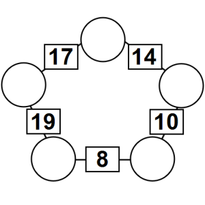 The aim of an arithmagon is to work out which numbers go in the empty circles. The numbers in the square boxes are made by adding together the numbers in the circles either side. For example, if the number in the square box was 10 you could try 6 and 4, but the numbers must also add up on the other edges, making this more difficult than it first appears.
