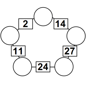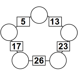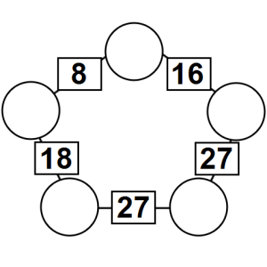 Here are four new difficult arithmagons for you to print on a Fruit and Vegetables themed worksheet. Use the buttons below the puzzles the shuffle the arithmagons to create four new puzzles, to view the solution, or to print as a worksheet.