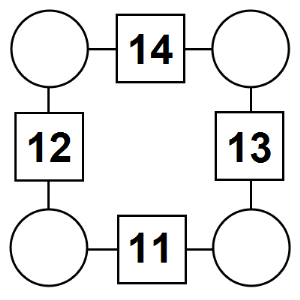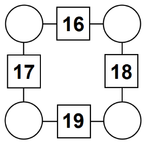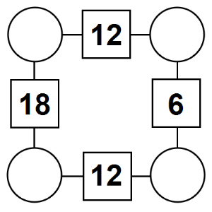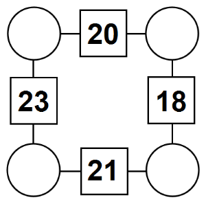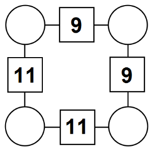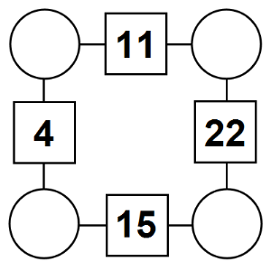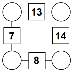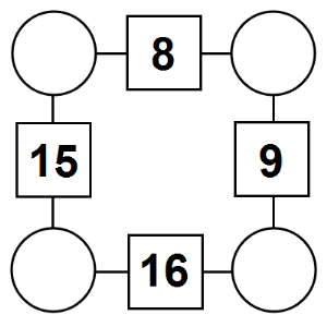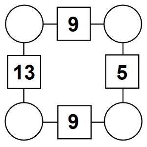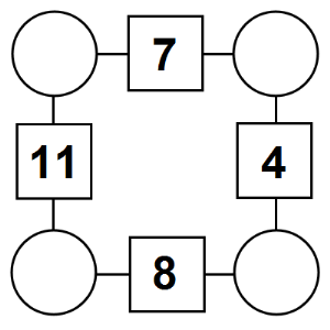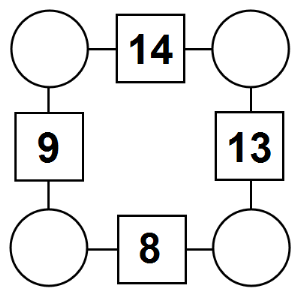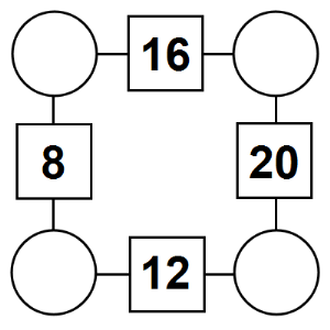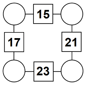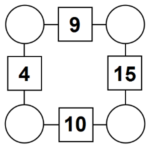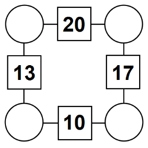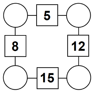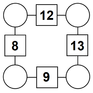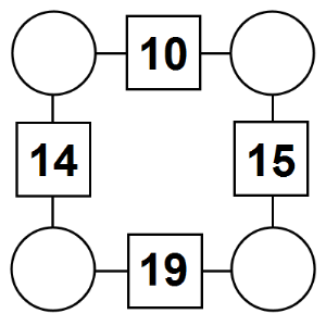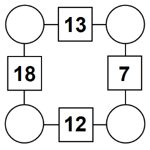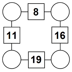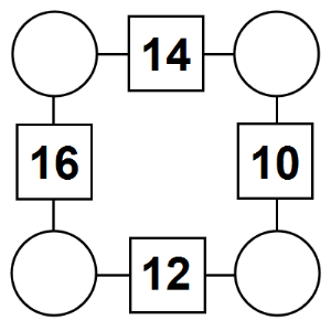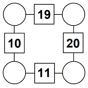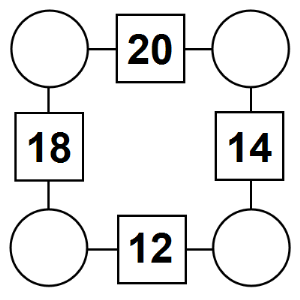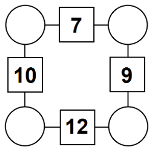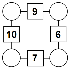The aim of an arithmagon is to work out which numbers go in the empty circles. The numbers in the square boxes are made by adding together the numbers in the circles either side. For example, if the number in the square box was 10 you could try 6 and 4, but the numbers must also add up on the other edges, making this more difficult than it first appears.