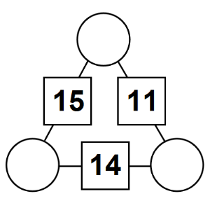 The aim of an arithmagon is to work out which numbers go in the empty circles. The numbers in the square boxes are made by adding together the numbers in the circles either side. For example, if the number in the square box was 10 you could try 6 and 4, but the numbers must also add up on the other edges, making this more difficult than it first appears.