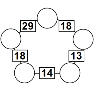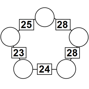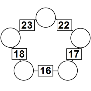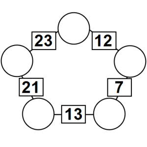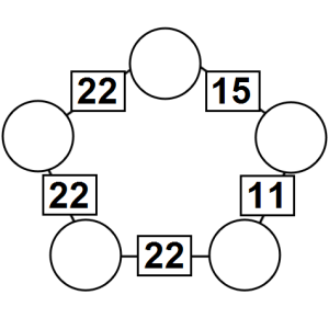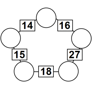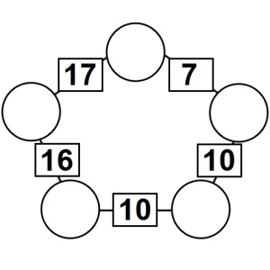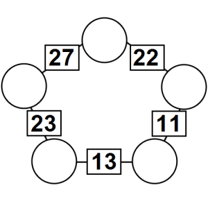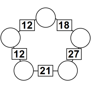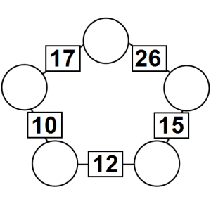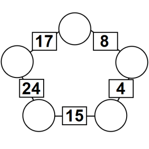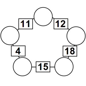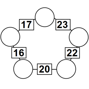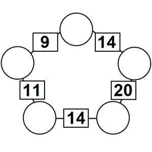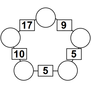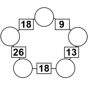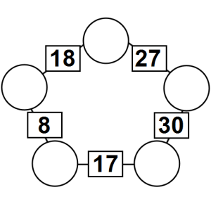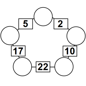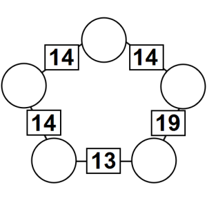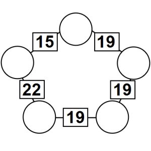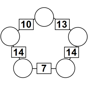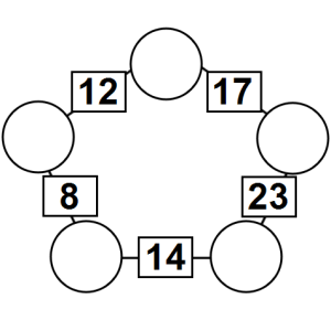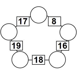 The aim of an arithmagon is to work out which numbers go in the empty circles. The numbers in the square boxes are made by adding together the numbers in the circles either side. For example, if the number in the square box was 10 you could try 6 and 4, but the numbers must also add up on the other edges, making this more difficult than it first appears.