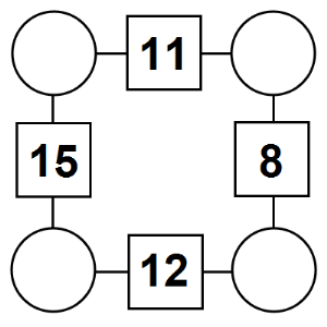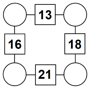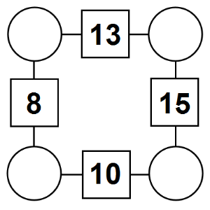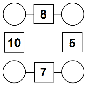 The aim of an arithmagon is to work out which numbers go in the empty circles. The numbers in the square boxes are made by adding together the numbers in the circles either side. For example, if the number in the square box was 10 you could try 6 and 4, but the numbers must also add up on the other edges, making this more difficult than it first appears.