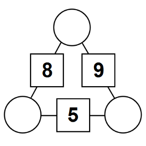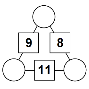 The aim of an arithmagon is to work out which numbers go in the empty circles. The numbers in the square boxes are made by adding together the numbers in the circles either side. For example, if the number in the square box was 10 you could try 6 and 4, but the numbers must also add up on the other edges, making this more difficult than it first appears.