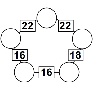The aim of an arithmagon is to work out which numbers go in the empty circles. The numbers in the square boxes are made by adding together the numbers in the circles either side. For example, if the number in the square box was 10 you could try 6 and 4, but the numbers must also add up on the other edges, making this more difficult than it first appears.
