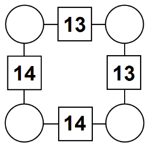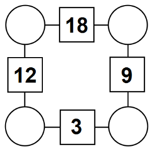 The aim of an arithmagon is to work out which numbers go in the empty circles. The numbers in the square boxes are made by adding together the numbers in the circles either side. For example, if the number in the square box was 10 you could try 6 and 4, but the numbers must also add up on the other edges, making this more difficult than it first appears.