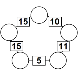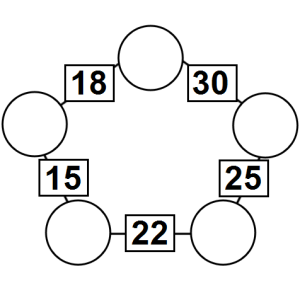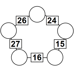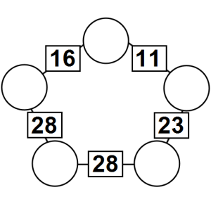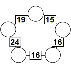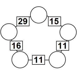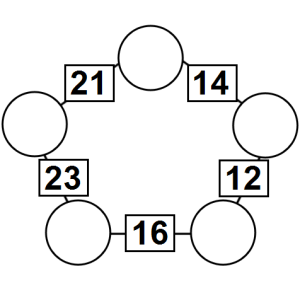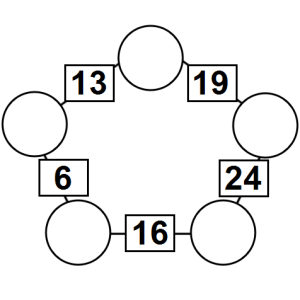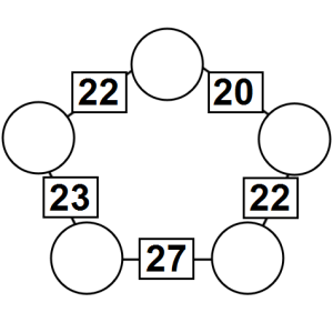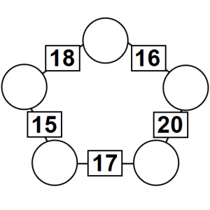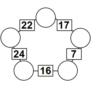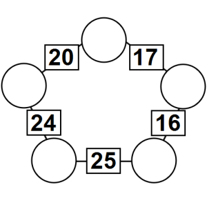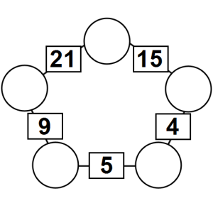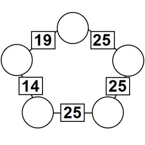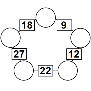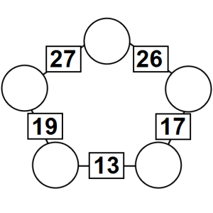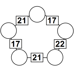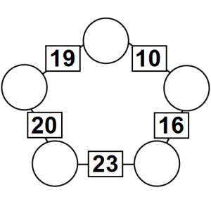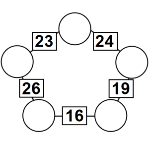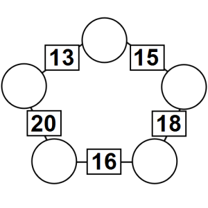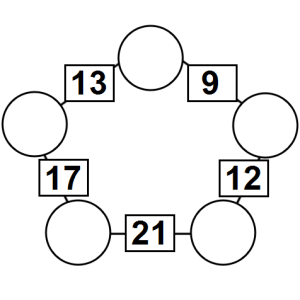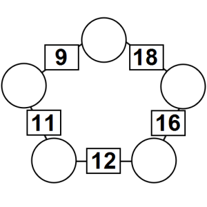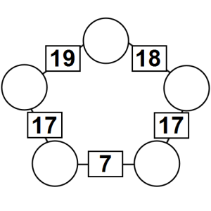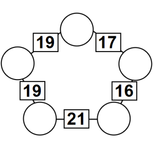 The aim of an arithmagon is to work out which numbers go in the empty circles. The numbers in the square boxes are made by adding together the numbers in the circles either side. For example, if the number in the square box was 10 you could try 6 and 4, but the numbers must also add up on the other edges, making this more difficult than it first appears.