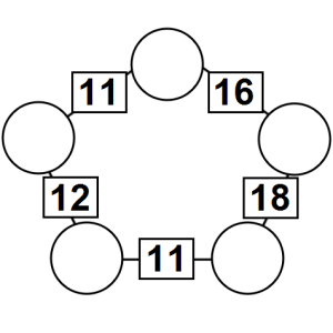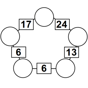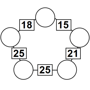 The aim of an arithmagon is to work out which numbers go in the empty circles. The numbers in the square boxes are made by adding together the numbers in the circles either side. For example, if the number in the square box was 10 you could try 6 and 4, but the numbers must also add up on the other edges, making this more difficult than it first appears.