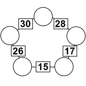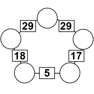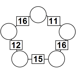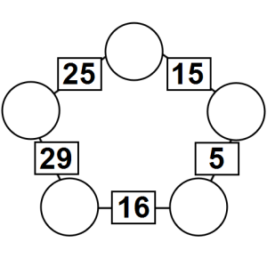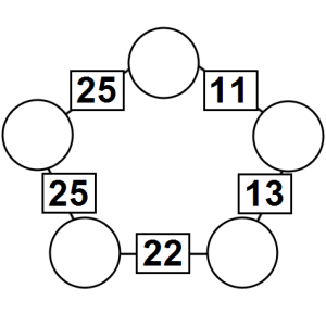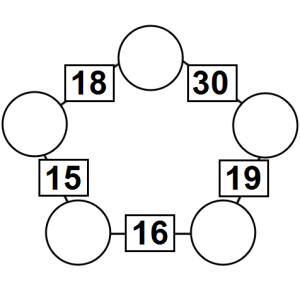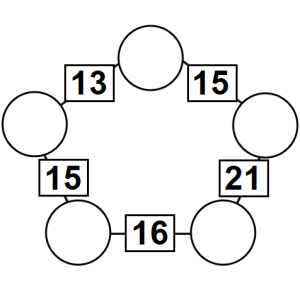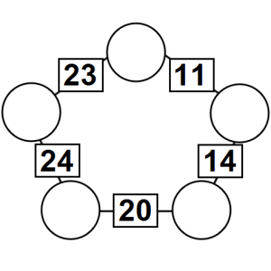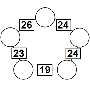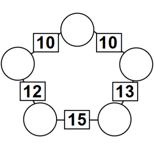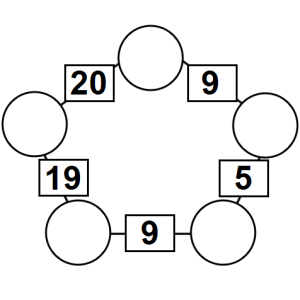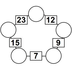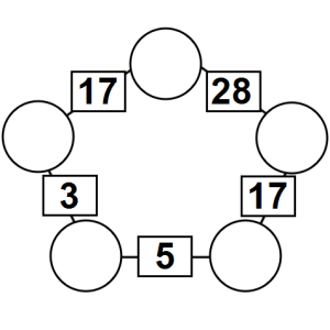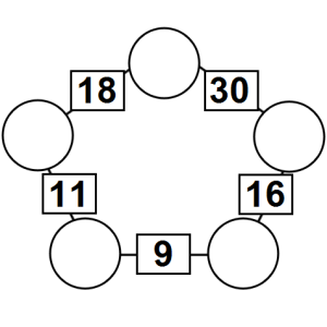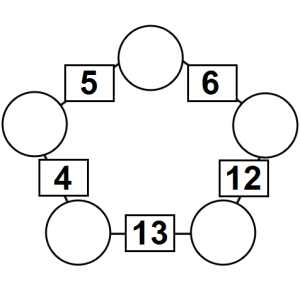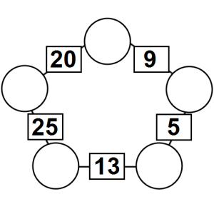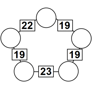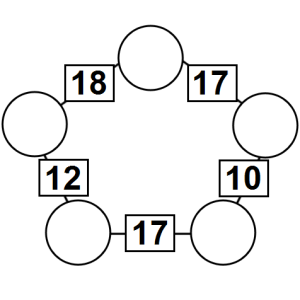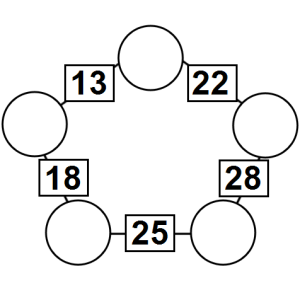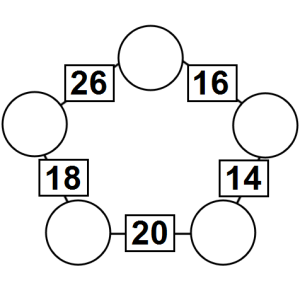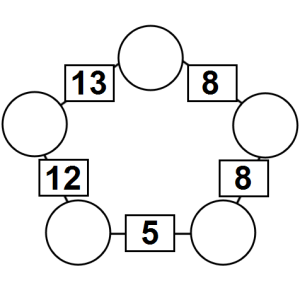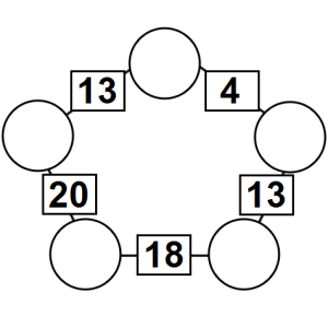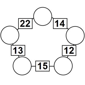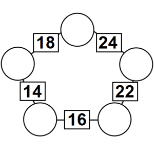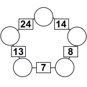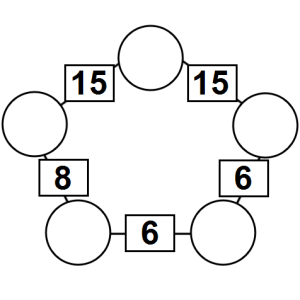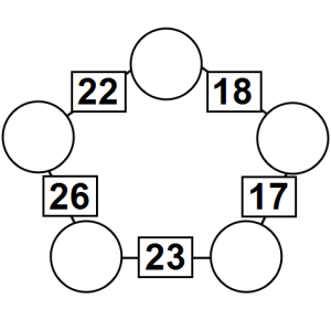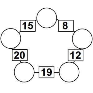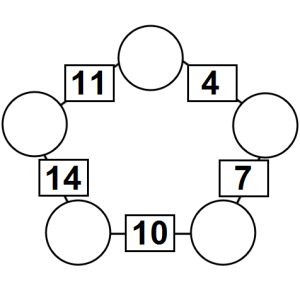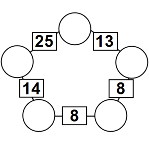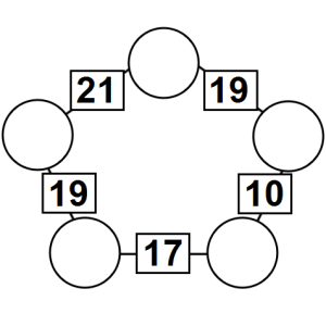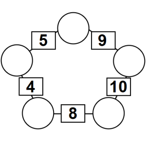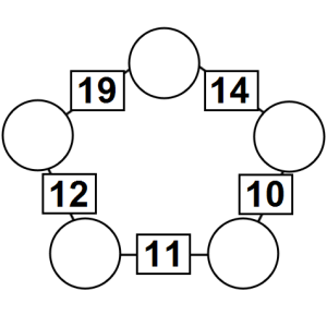 The aim of an arithmagon is to work out which numbers go in the empty circles. The numbers in the square boxes are made by adding together the numbers in the circles either side. For example, if the number in the square box was 10 you could try 6 and 4, but the numbers must also add up on the other edges, making this more difficult than it first appears.