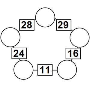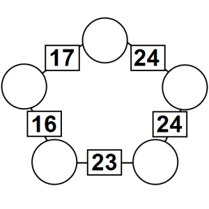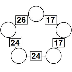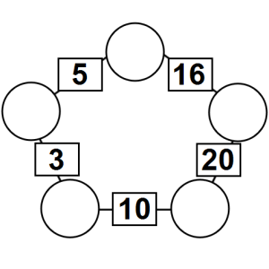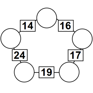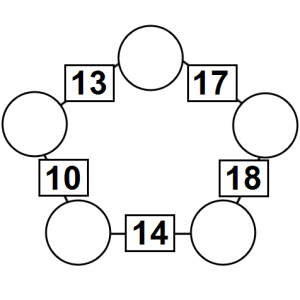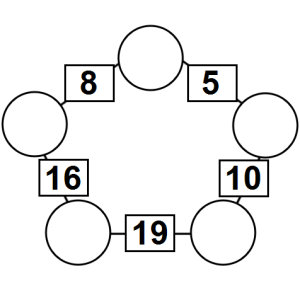 The aim of an arithmagon is to work out which numbers go in the empty circles. The numbers in the square boxes are made by adding together the numbers in the circles either side. For example, if the number in the square box was 10 you could try 6 and 4, but the numbers must also add up on the other edges, making this more difficult than it first appears.