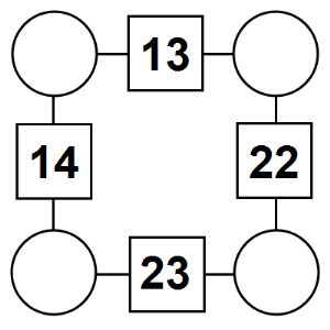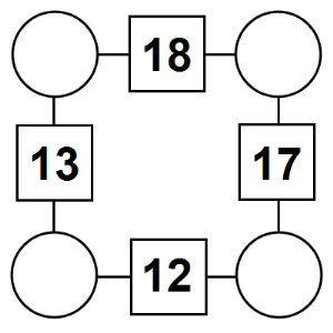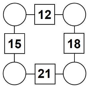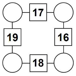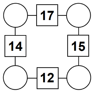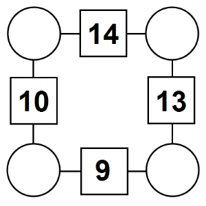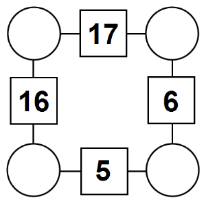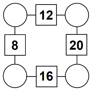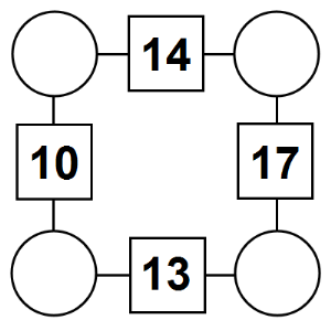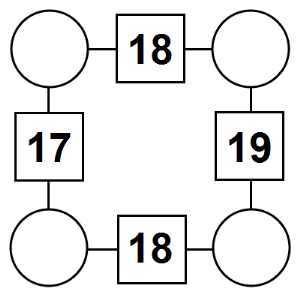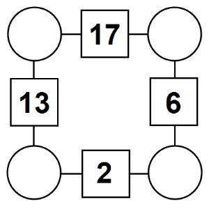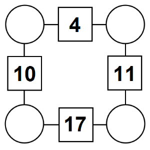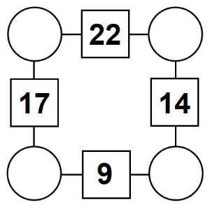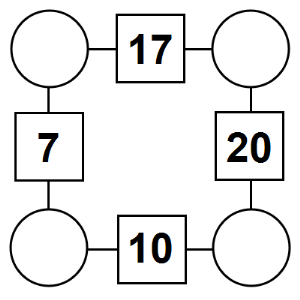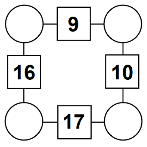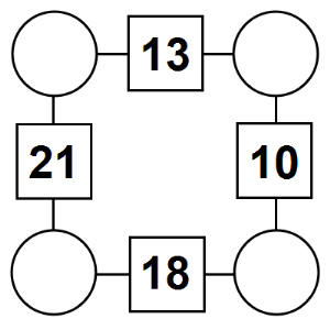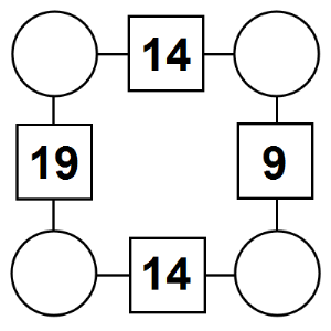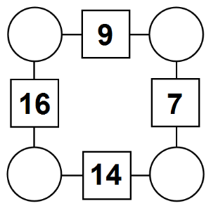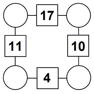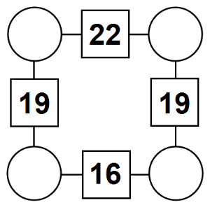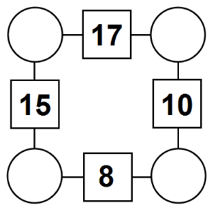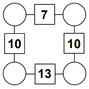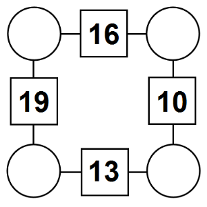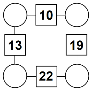 The aim of an arithmagon is to work out which numbers go in the empty circles. The numbers in the square boxes are made by adding together the numbers in the circles either side. For example, if the number in the square box was 10 you could try 6 and 4, but the numbers must also add up on the other edges, making this more difficult than it first appears.