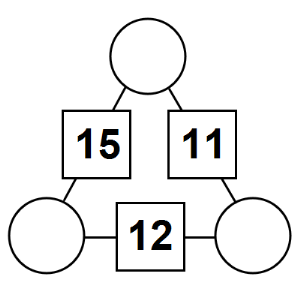 The aim of an arithmagon is to work out which numbers go in the empty circles. The numbers in the square boxes are made by adding together the numbers in the circles either side. For example, if the number in the square box was 10 you could try 6 and 4, but the numbers must also add up on the other edges, making this more difficult than it first appears.