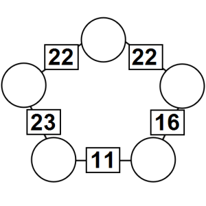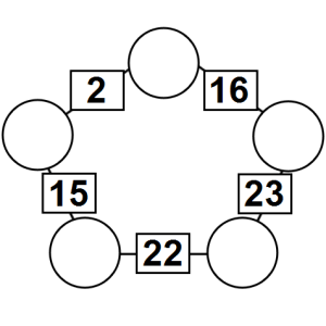 The aim of an arithmagon is to work out which numbers go in the empty circles. The numbers in the square boxes are made by adding together the numbers in the circles either side. For example, if the number in the square box was 10 you could try 6 and 4, but the numbers must also add up on the other edges, making this more difficult than it first appears.