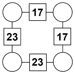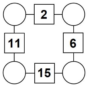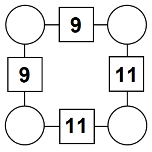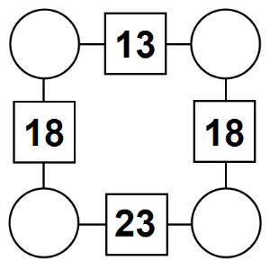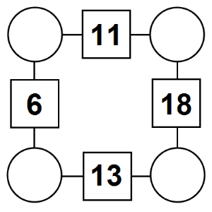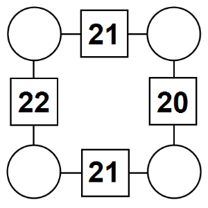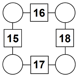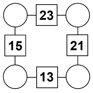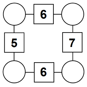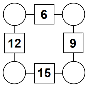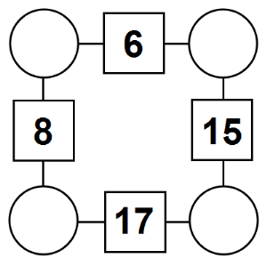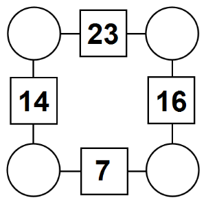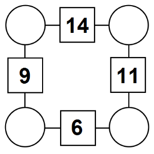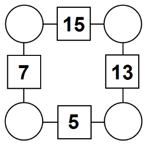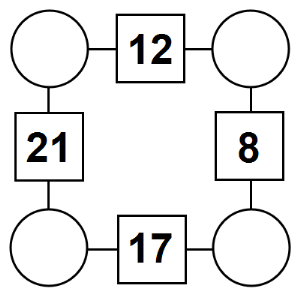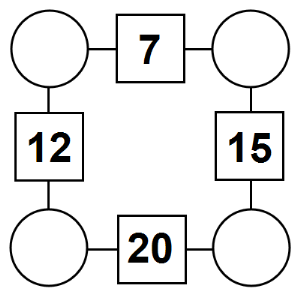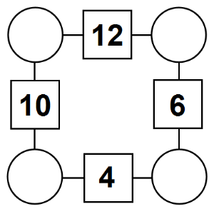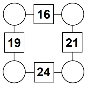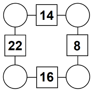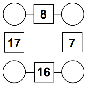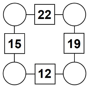 The aim of an arithmagon is to work out which numbers go in the empty circles. The numbers in the square boxes are made by adding together the numbers in the circles either side. For example, if the number in the square box was 10 you could try 6 and 4, but the numbers must also add up on the other edges, making this more difficult than it first appears.